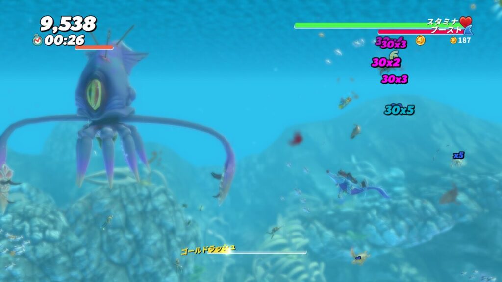 24回シャークアタックを成功させると、クラーケンは死に、ステージクリアとなります。
