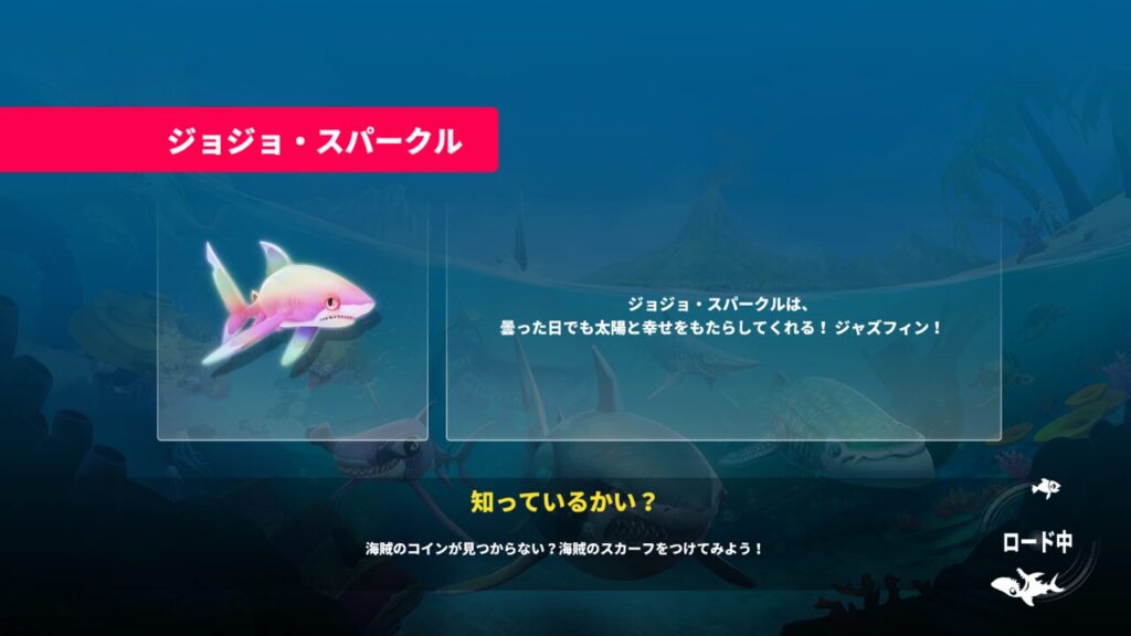 そして2体目はジョジョ・スパークルという虹色に輝く神秘的なサメです。