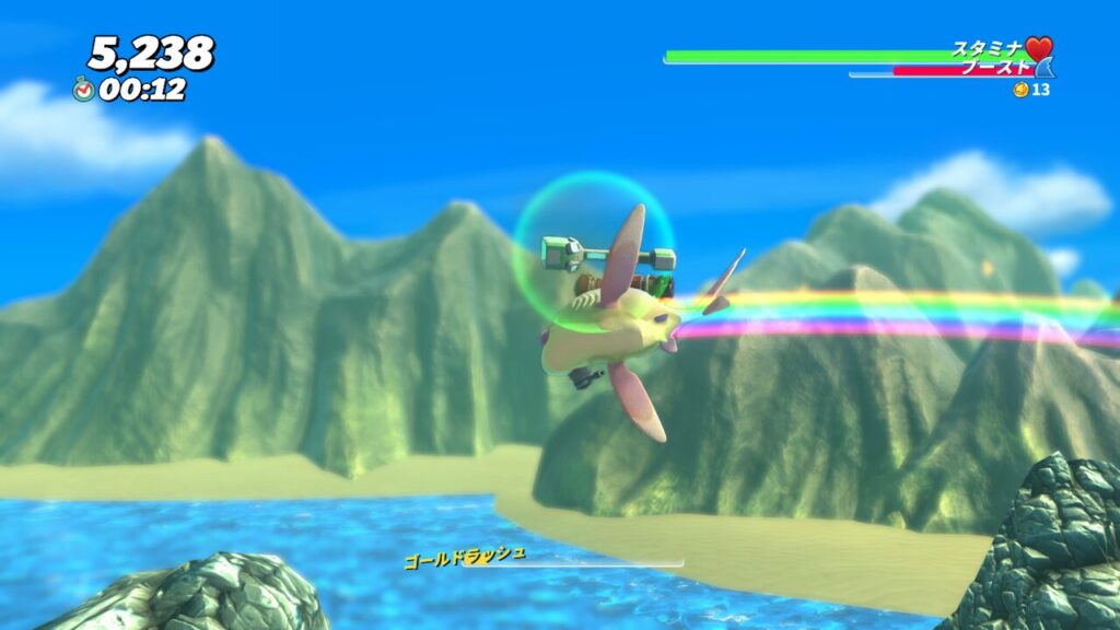 ジョジョスパークルが泳いだり飛んだりした後には綺麗な虹がかかります。