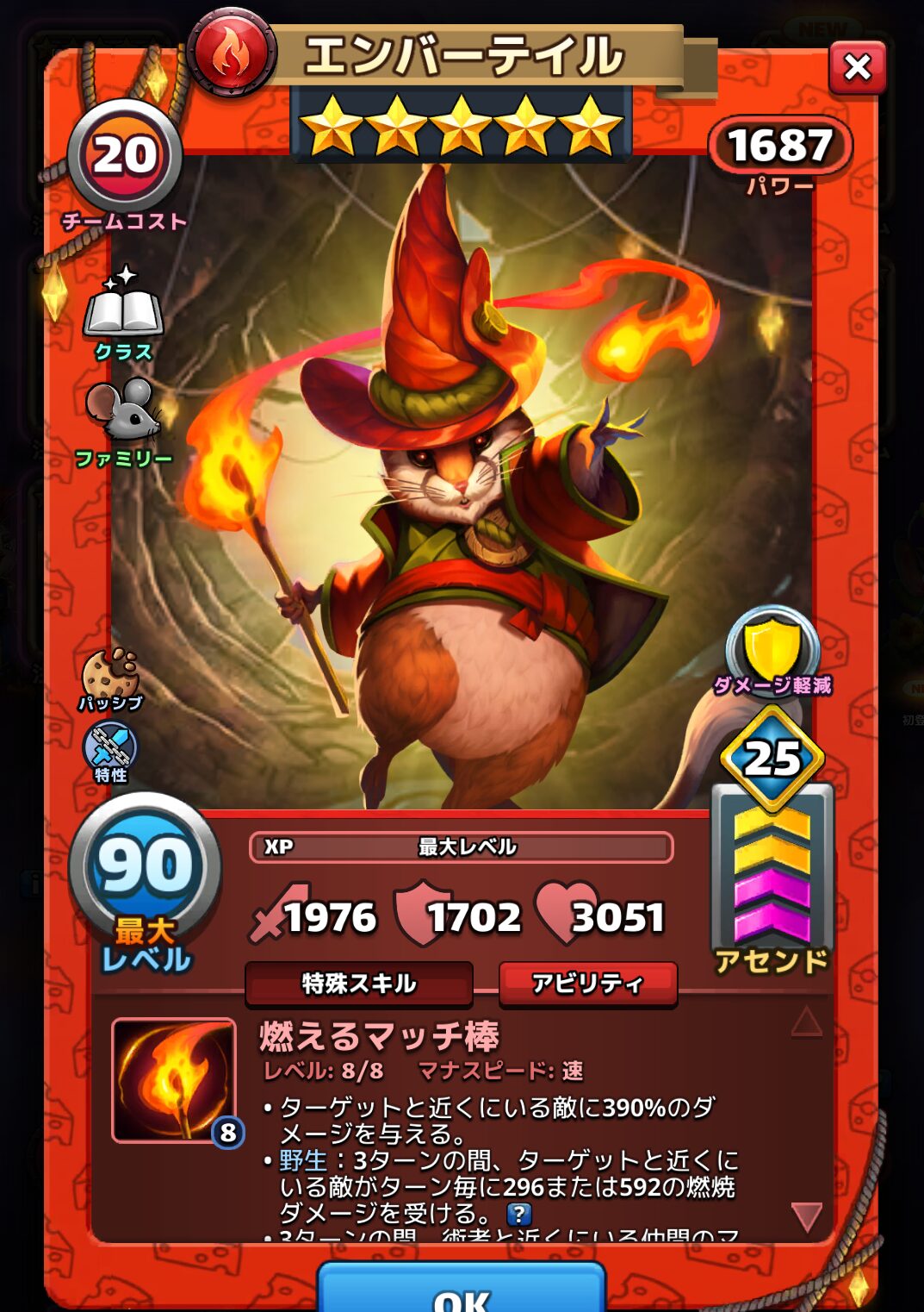 エンバーテイルのアビリティとパッシブスキルは以下の通りです。※達人アビリティ開放した場合