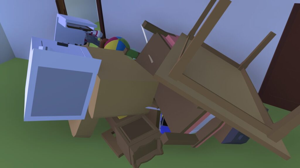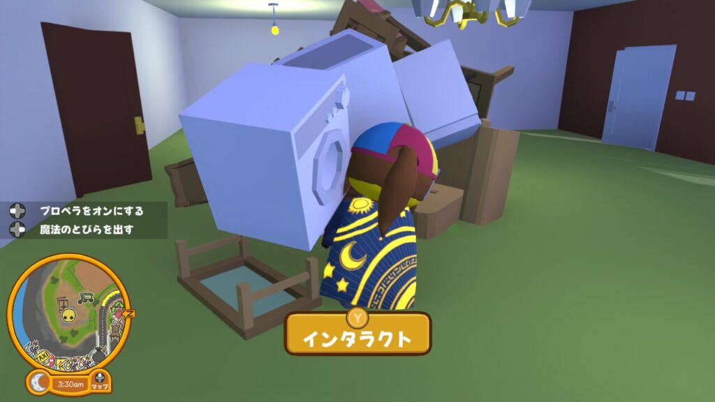 ↑動かせる家具などの多い住宅内にこの杖を持ってはいると、このように身動きがとれないほどのオブジェクトを引き寄せてしまいます(笑)