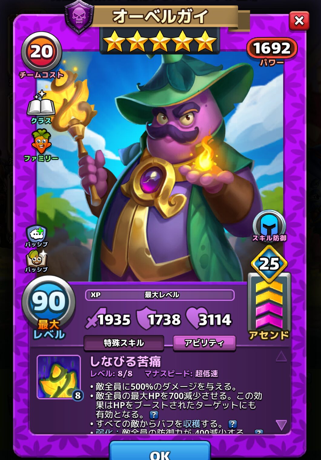 オーベルガイのアビリティとパッシブスキルは以下の通りです。※達人アビリティ開放した場合