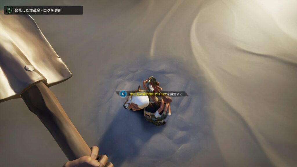 Sea of Thievesをプレイしていると、たまに砂に埋もれたガイコツを発見する事がある。