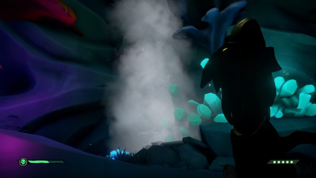 中に入ると間欠泉のような物が噴き出してる場所があるので、その勢いに乗ると上部に上部に登っていく事ができます。