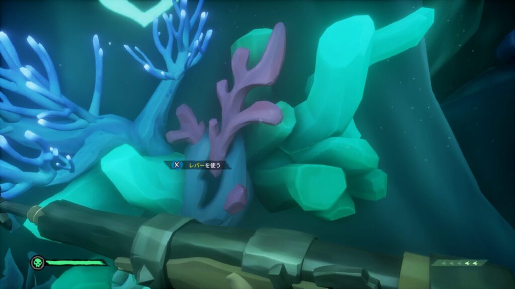 まずは青いサンゴのレバー仕掛けをクリアしましょう。