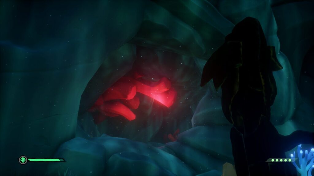 オレンジ珊瑚のレバーをクリアすると赤い珊瑚のレバーに続く洞窟が開くので、奥に進んでレバーを作動させます。