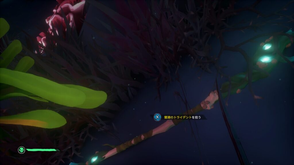 ↑で、赤い珊瑚のレバーを作動させる道中には以前当サイトでも紹介しました【闇潮のトライデント】が落ちているので、最後のレバーを作動させる前に拾っておきましょう。