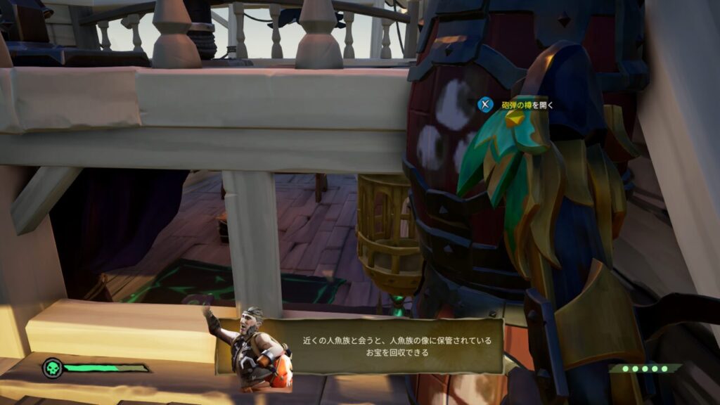 ↑筆者は獲得した財宝を人魚の像に預け入れたあと、そのままXボタン長押しで自分の船に戻してもらいました。