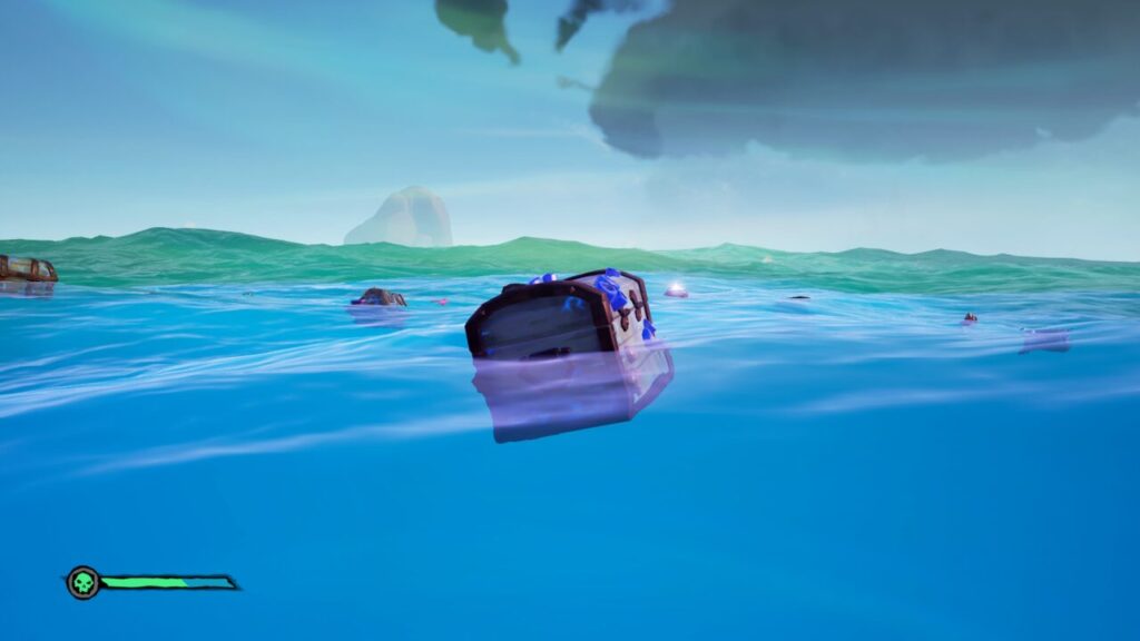 けっこう雑に散らばり、サメなどに気を付けながら回収しないといけないので、筆者は銛で回収しましたが、最初から船の上とかに全部ワープさせてくれたら助かるんだけどなあ(笑)