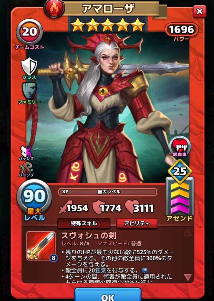 アマローザのアビリティとパッシブスキルは以下の通りです。※達人アビリティ開放した場合