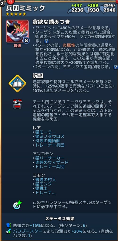 ステータス値も高いですし、特殊スキル使用したあと閉じちゃうし、さらに戦利品恩恵まであるなんて有能!