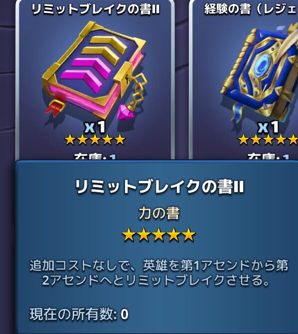 リミットブレイクの書Ⅱは、追加コストなしで英雄を第1アセンドから第2アセンドへとリミットブレイクできる。