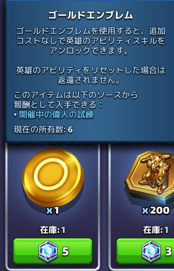 ゴールドエンブレムは追加コストなしで英雄のアビリティスキルをアンロックできる。
