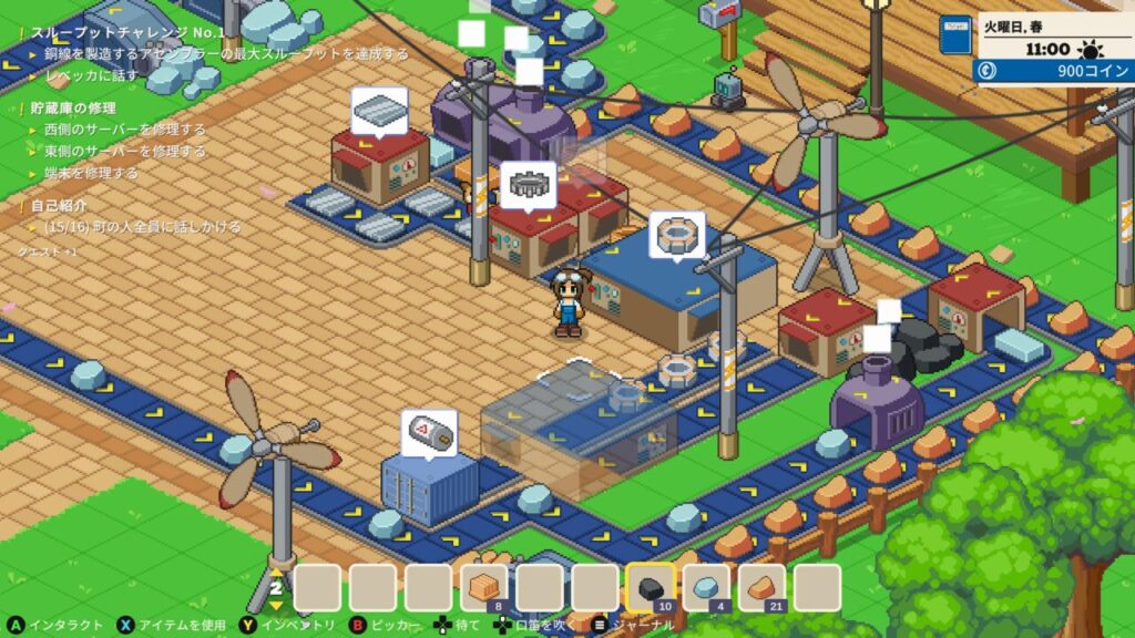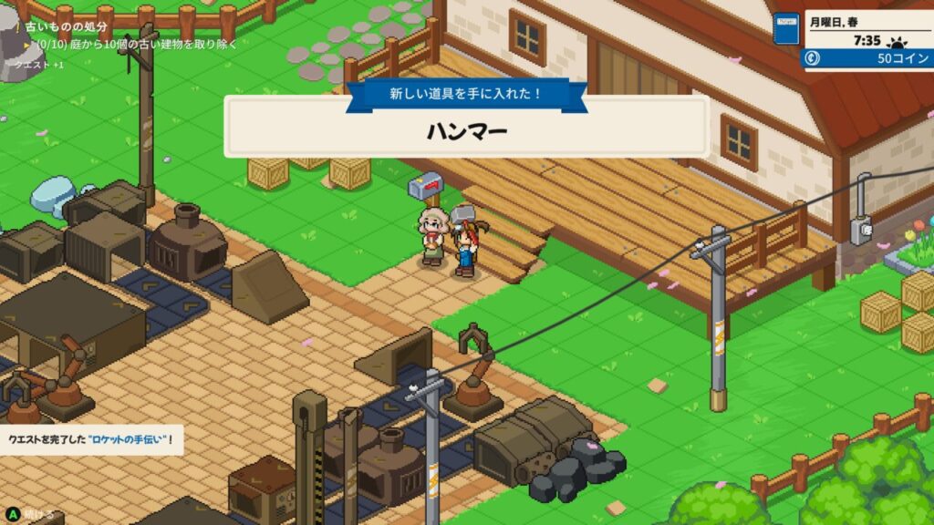 過疎化した故郷の復興と、夢だったロケットの完成を目指して、様々なタスクをこなしたり、街の人と交流したり、そして膨大な数の部品を製造する事がゲームのメインとなる。