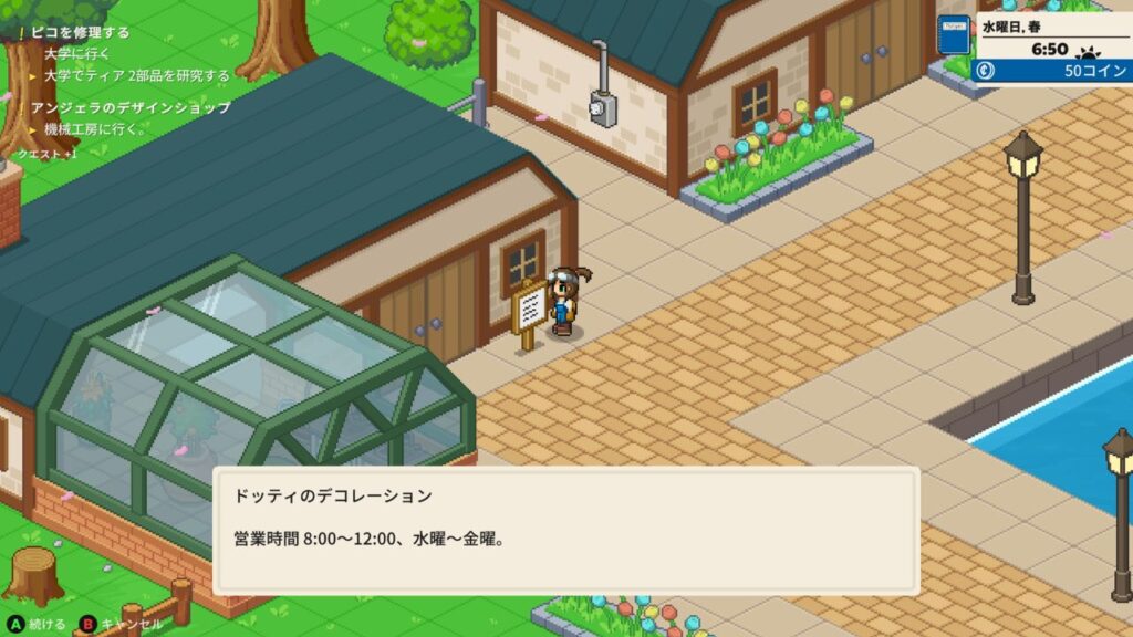 街エリアにはいくつかの商店があったり、住民たちとの好感度などもあったりする。